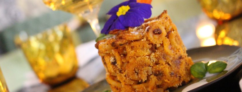 Anelletti al forno con ragu e piselli: Oven-baked Anelletti pasta with beef ragout & peas
